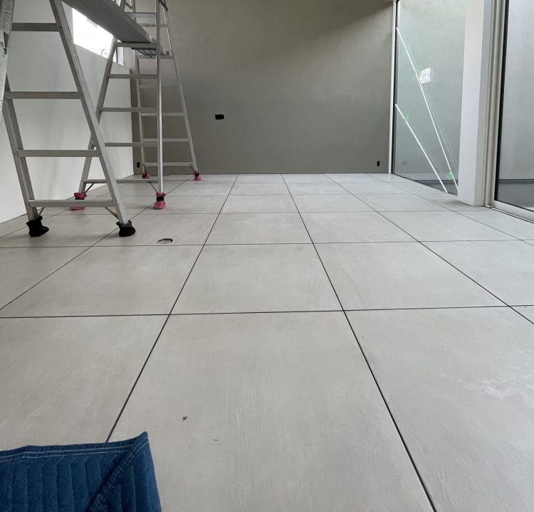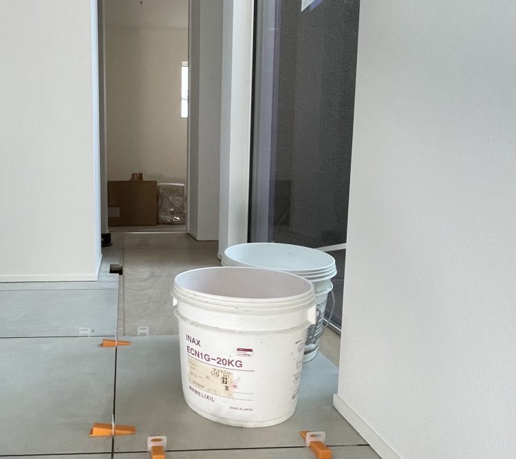 リビングは貼り施工が完了しこれから目地込めをしていきます。