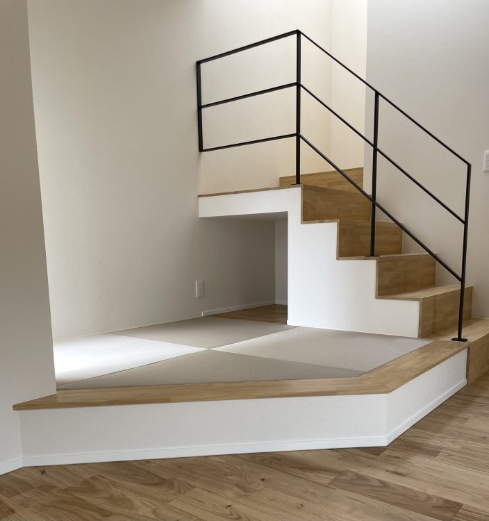 床見切りの厚みと踏み板の見付け寸法を15mmに合わせ繋がりを意識しスリムに仕上げました!