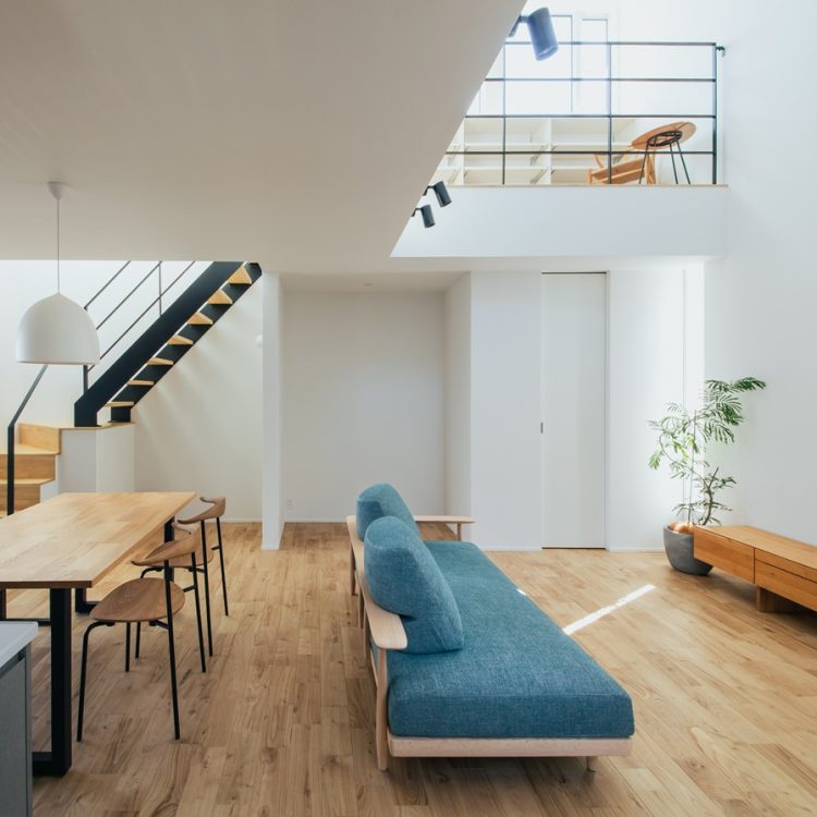 吹き抜けによる高窓の設置 「吹き抜け」を設け、高い位置にある窓(高窓)から光を落とすことで、室内の奥まで光が届きます。空だけが見える窓は、開放感を演出しつつ、通行人と目が合う心配もありません。