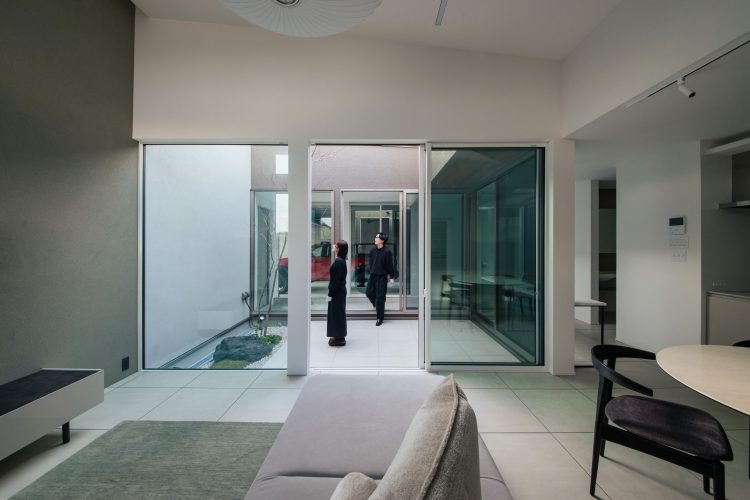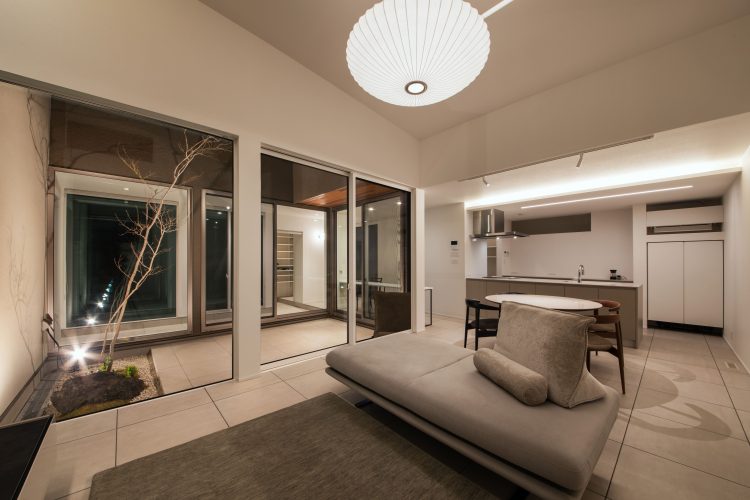 外からの視線を完全に遮りつつ、柔らかな光を室内に取り込む中庭。キャンプ好きのご夫妻が、人目を気にせずBBQを楽しんだり、夜には星空を眺めたり。浜松市内の住宅地であっても、カーテンのいらない開放的な暮らしを実現しました。