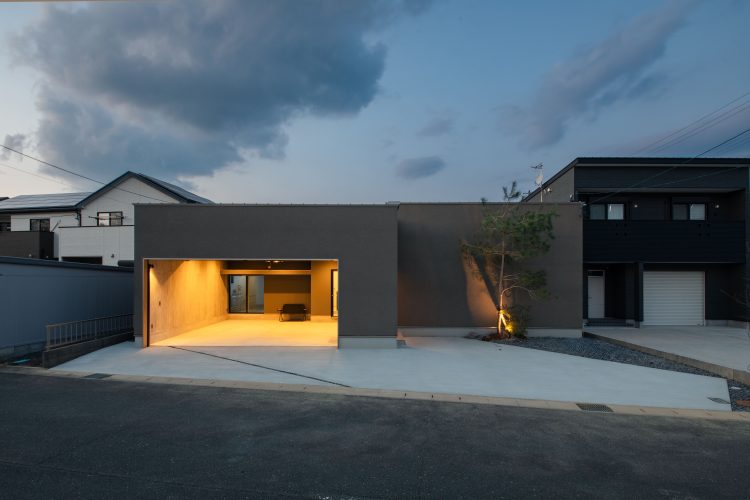 バイク2台と大型車を収めるだけでなく、壁面にプロジェクターを投影して映画を楽しめる趣味の空間に。単なる車庫ではなく、暮らしを彩る居場所となりました。