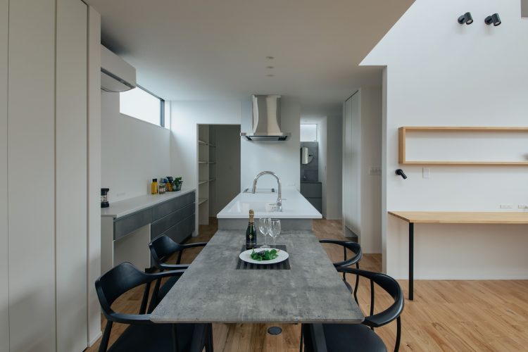 買い物から帰宅し、数歩でパントリーと冷蔵庫へアクセスできるショートカット動線を確保。重い荷物を持ってリビングを横切る必要はありません。