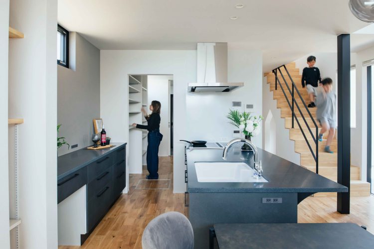 買い物から帰ってすぐにパントリーへ行ける動線や学校用品を片付けてから手洗いができる流れなど、日々の暮らしを細部までシミュレーション。建築家はお客様の要望を100%引き出した上で、さらなる付加価値をプラスして提案します。