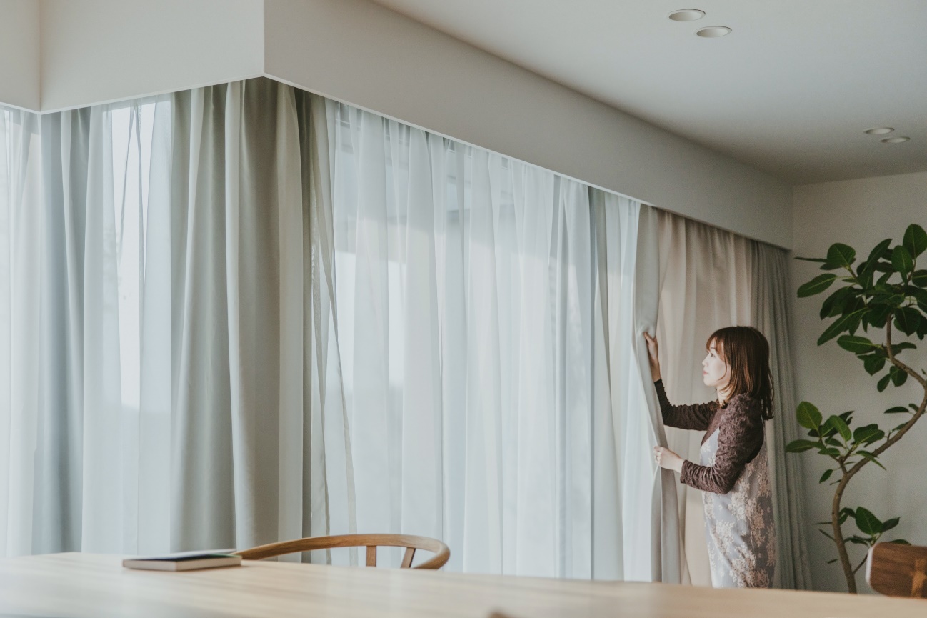 そのため、カーテンを開けたときに布が溜まる部分も、できるだけ部屋の両サイドのみとなるよう、レールの付け方なども工夫しています。
