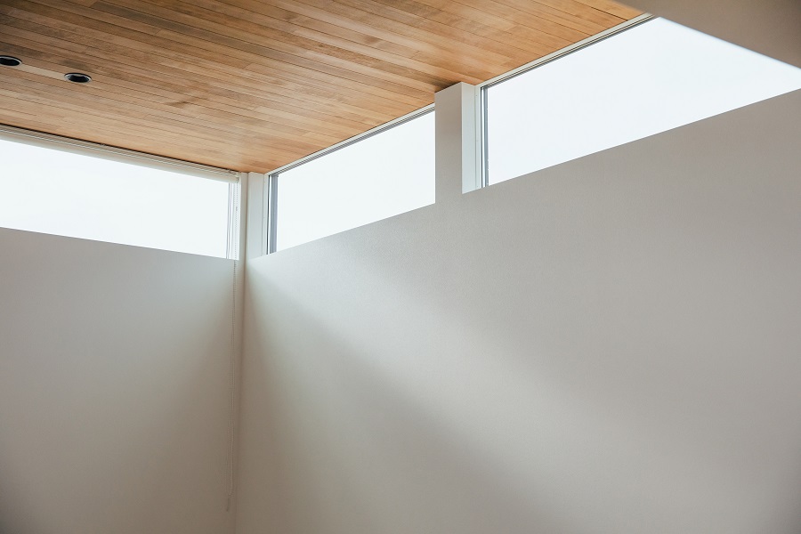 外壁の窓は高窓を採用し、室内からは空を感じることができ、外部からは中の様子がわからない高さに窓があるのでカーテンレスで生活でき、リラックス感は格別です。