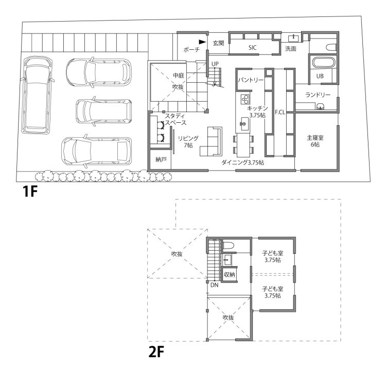 アウトドア好きなご夫婦が求めたのは「プライベートな外部空間」でした。「カーテンレスで開放的に暮らしたい(でも北側はスーパーの駐車場…)」「コストコで買ったストックを、家の中心にまとめて置きたい」「共働きだから、家事動線は絶対に妥協したくない」