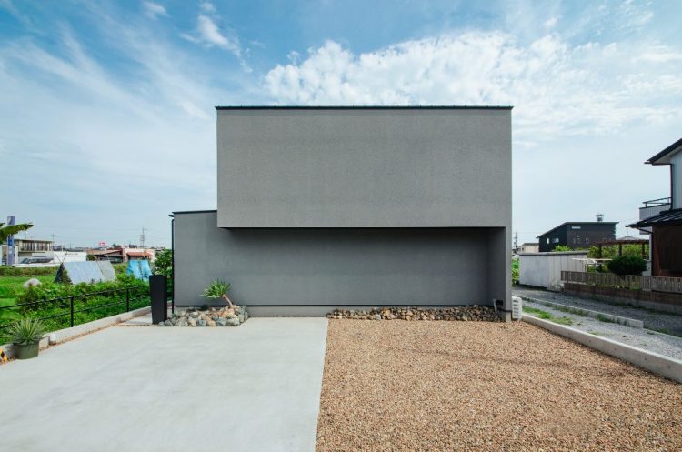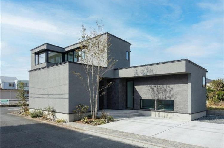 「家っぽくないデザインにしたい」という要望から生まれた、グレーのタイル貼りが美しいファサード。電柱の位置まで計算に入れて建物を配置し、街並みに対して美しくあることにもこだわりました。シンプルモダンなデザインが好きな方必見です。