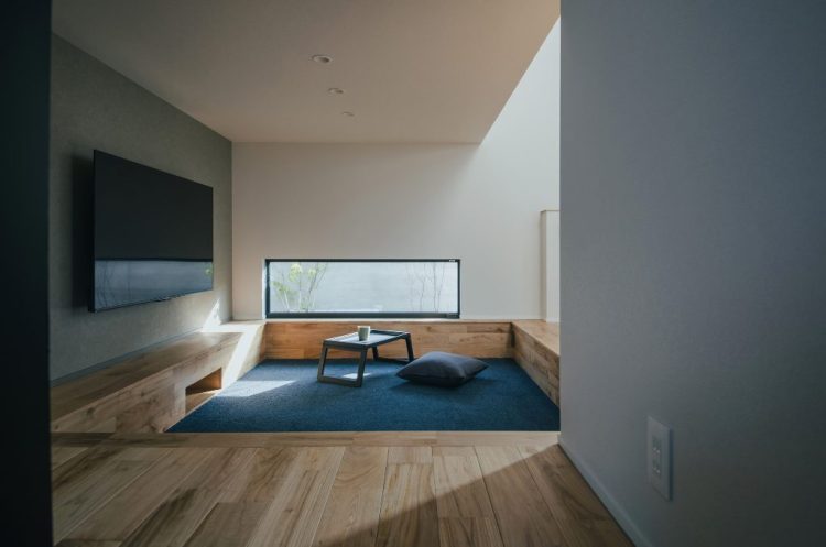 外界を閉じたことで失われる開放感・採光・空や緑との繋がりを取り入れるために、横に広がる平面空間の設計だけでなく、上下に広がる立体空間を活用した、建築家が持つ設計技術を惜しみなく発揮した遊び心のあるプランとなりました。